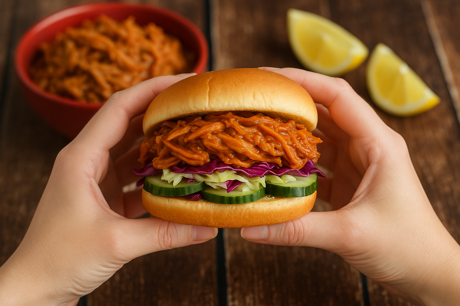 - Serve it on fluffy buns with slaw on top—or not. You’re the boss.