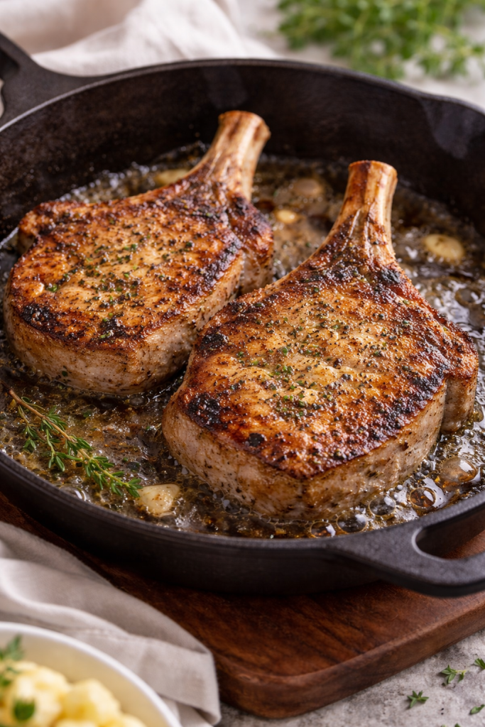 Pat the pork chops dry and season both sides generously with salt and pepper.